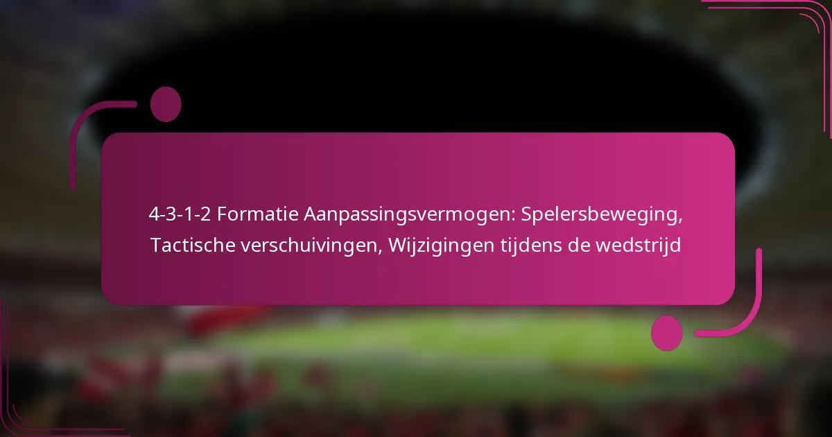 De 4-3-1-2 formatie staat bekend om zijn aanpassingsvermogen, waardoor teams hun tactieken soepel kunnen aanpassen aan de dynamiek van een wedstrijd. Met een focus op gecoördineerde spelersbewegingen, maakt deze formatie naadloze overgangen tussen verdediging en aanval mogelijk, waardoor teams effectief kunnen inspelen op de strategieën van hun tegenstanders. Aanpassingen tijdens de wedstrijd, zoals wissels en rolwijzigingen, vergroten de effectiviteit verder, zodat teams hun competitieve voordeel gedurende de wedstrijd kunnen behouden.