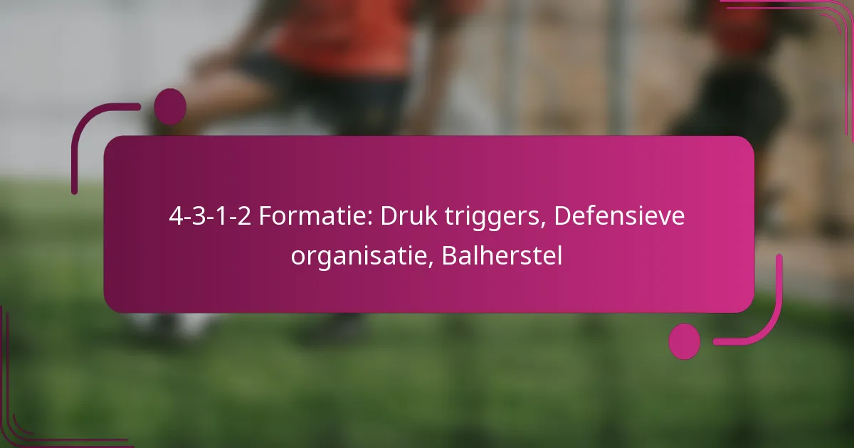 De 4-3-1-2 formatie is een tactische opstelling in het voetbal die de nadruk legt op een sterke aanwezigheid op het middenveld, met vier verdedigers, drie middenvelders, één aanvallende middenvelder en twee aanvallers. Deze formatie biedt niet alleen defensieve soliditeit, maar maakt ook aanvallende flexibiliteit mogelijk, waardoor het ideaal is voor teams die de controle over het spel willen hebben. Het begrijpen van druk triggers en het handhaven van defensieve organisatie zijn essentieel voor effectieve balrecuperatie en de overgang tussen aanval en verdediging.