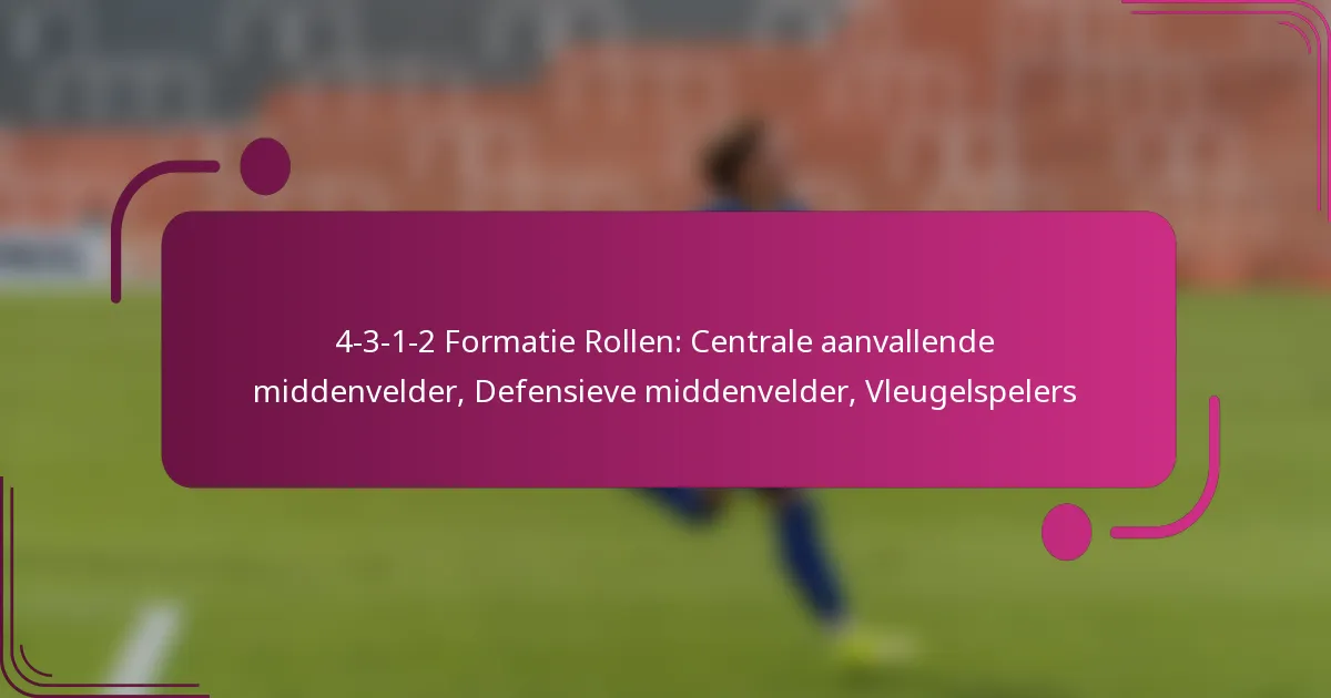 De 4-3-1-2 formatie heeft een unieke opstelling waarbij spelers specifieke rollen hebben die bijdragen aan zowel offensieve als defensieve strategieën. Het begrijpen van de verantwoordelijkheden van de centrale aanvallende middenvelder, de defensieve middenvelder en de vleugelspelers is cruciaal voor een effectieve teamperformance.