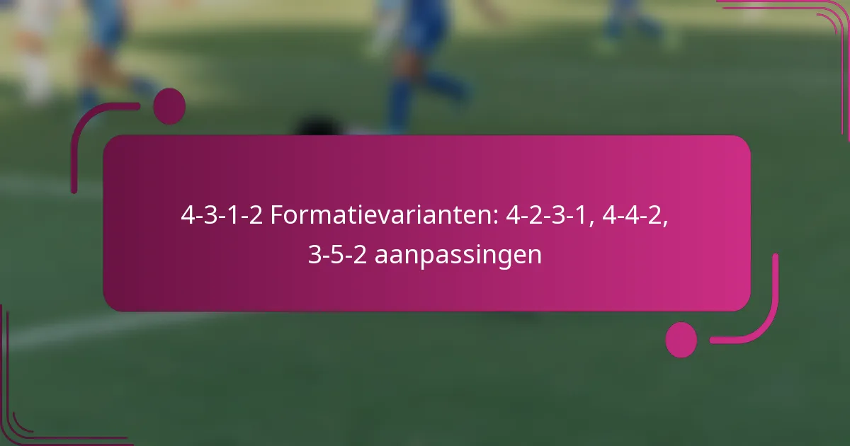 De 4-3-1-2 formatie dient als een veelzijdige tactische opstelling in het voetbal, waarbij defensieve kracht in balans wordt gebracht met aanvallende opties. Varianten zoals de 4-2-3-1 en 4-4-2 passen deze formatie aan om de controle op het middenveld te verbeteren en meer aanvallende flexibiliteit te bieden, terwijl de 3-5-2 een andere benadering biedt door wing-backs te gebruiken voor breedte. Elke aanpassing stelt teams in staat hun strategieën af te stemmen op de sterkte van de spelers en de situatie in de wedstrijd.