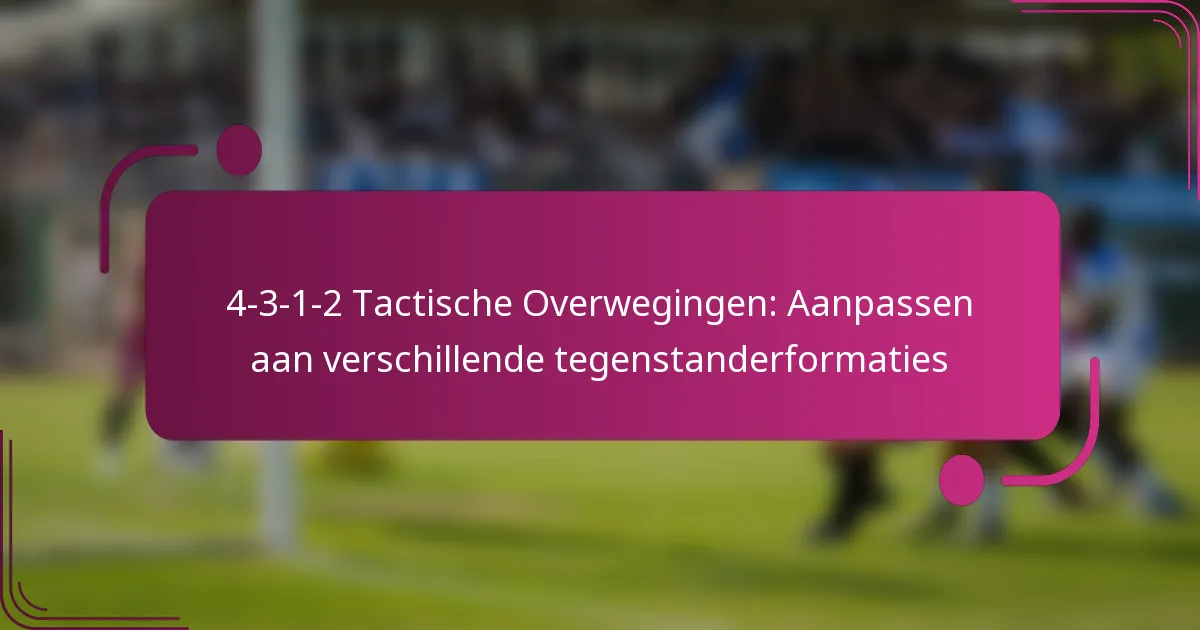 De 4-3-1-2 formatie is een veelzijdige tactische opstelling in het voetbal, gekenmerkt door een solide middenveld en een dubbele aanvallerslijn. Door zich aan te passen aan verschillende tegenstanderformaties kunnen teams hun defensieve en aanvallende strategieën verbeteren, zwaktes uitbuiten en tegelijkertijd hun eigen sterkte versterken. Deze aanpasbaarheid is cruciaal voor het behouden van controle en het creëren van scoringskansen tegen verschillende speelstijlen.